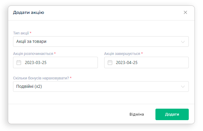 Можете додавати нові товари, або створювати налаштування для вже доданих (на приклад, які були додані під час створення Акцій).