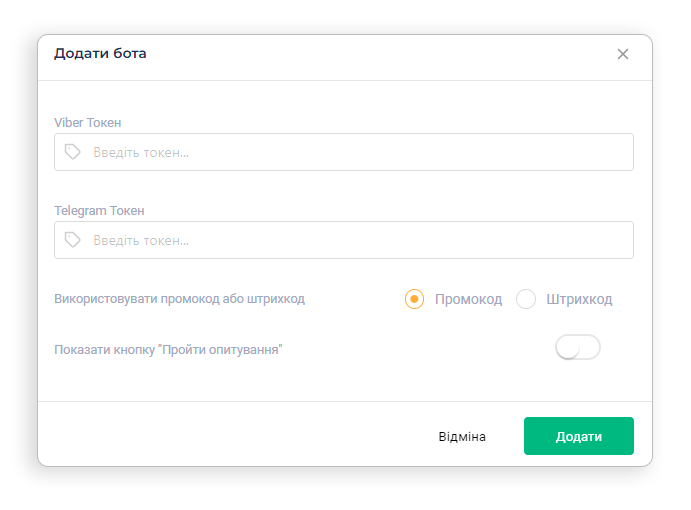 Скопіюйте токен Вайбер та Телеграм бота та вставте у відповідне поле myBot